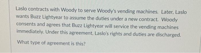 Solved Laslo Contracts With Woody To Serve Woody S Vending Chegg Com